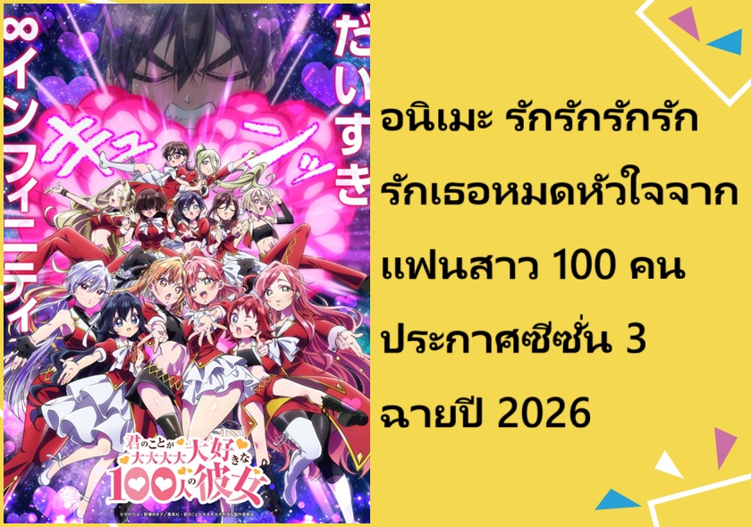 อนิเมะ รักรักรักรักรักเธอหมดหัวใจจากแฟนสาว 100 คน ประกาศซีซั่น 3 ฉายปี 2026
