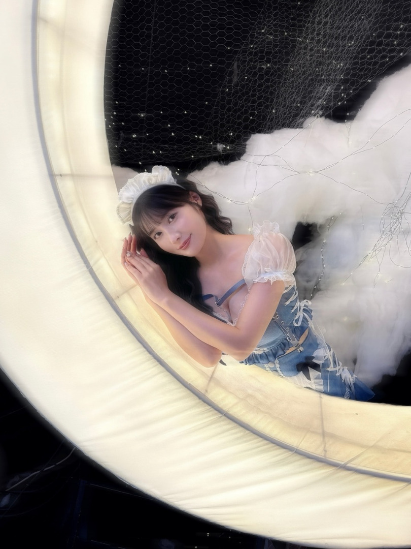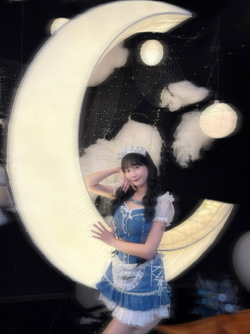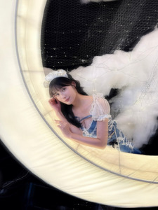 คุณฟูจิโมริโพสต์ภาพในชุดคอสเพลย์สุดน่ารัก พร้อมแคปชั่นเป็นอิโมจิรูปจันทร์เสี้ยว ก้อนเมฆ และหัวใจสีฟ้า
