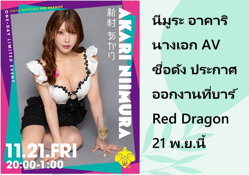 นีมูระ อาคาริ นางเอก AV ชื่อดัง ประกาศออกงานที่บาร์ Red Dragon 21 พ.ย.นี้