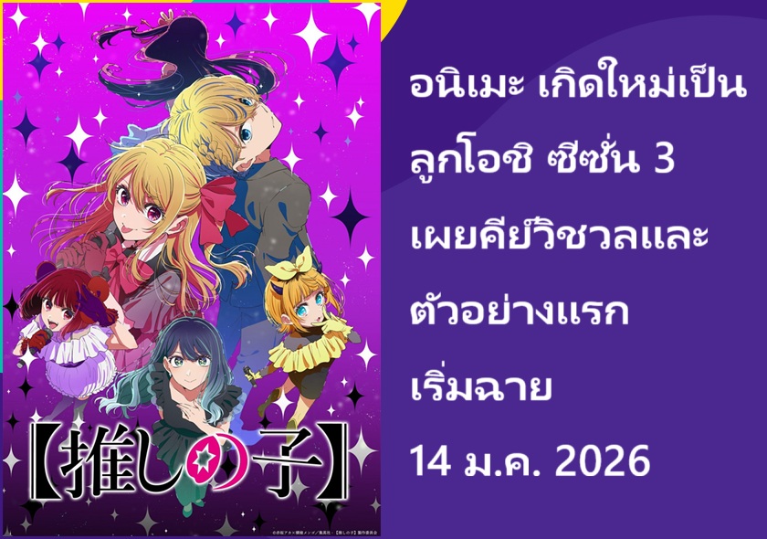 อนิเมะ เกิดใหม่เป็นลูกโอชิ ซีซั่น 3 เผยคีย์วิชวลและตัวอย่างแรก เริ่มฉาย 14 ม.ค. 2026