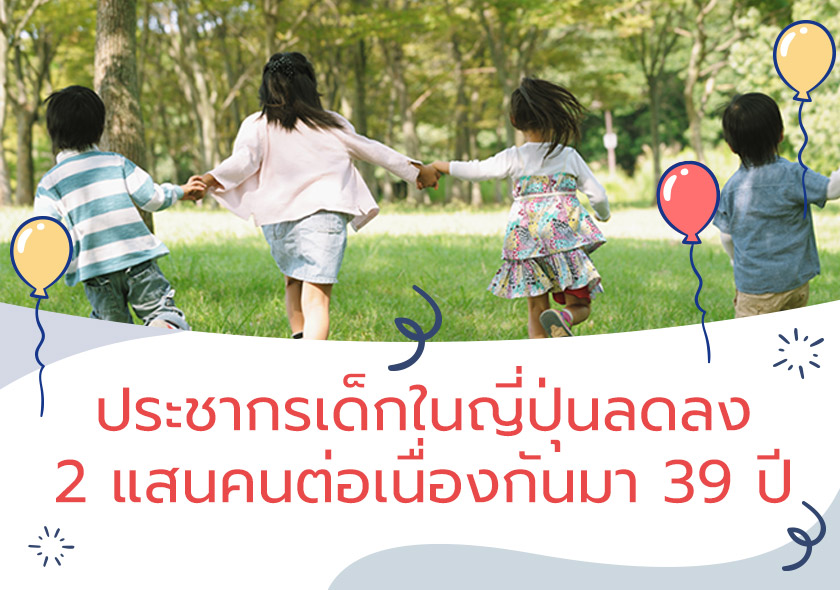 ประชากรเด็กในญี่ปุ่นลดลงจากปีที่แล้ว 2 แสนคน และลดลงติดต่อกันมากว่า 39 ปี