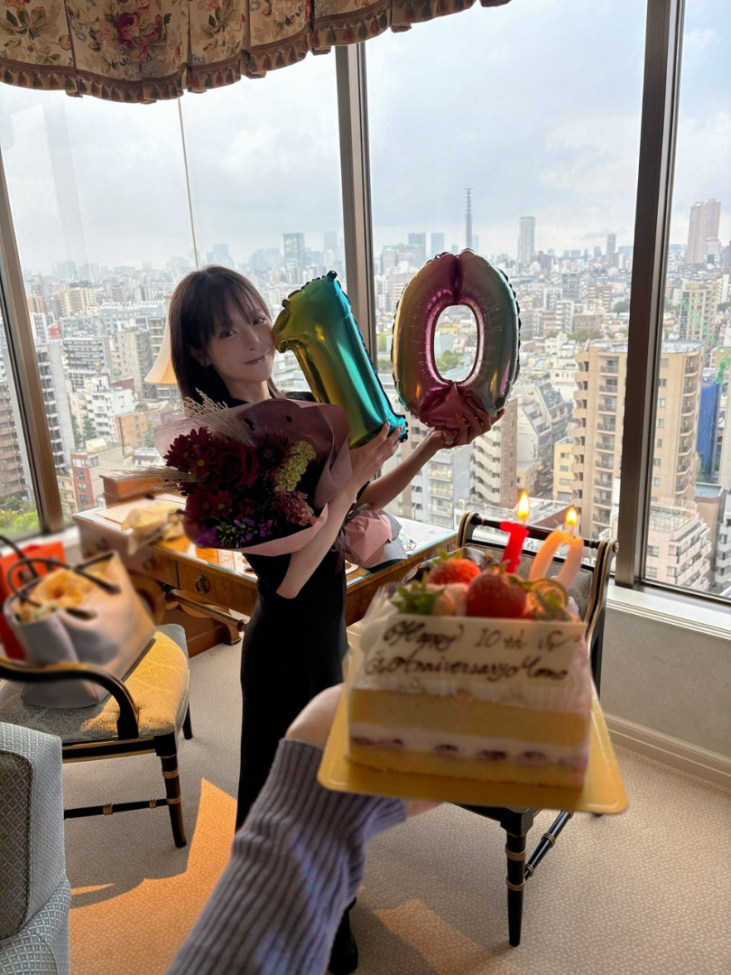 ในโพสต์ 1 คุณโมโมโนกิโพสต์ภาพตอนได้รับของขวัญครบรอบเดบิวต์ 10 ปีจากเพื่อนซี้ พร้อมแคปชั่นดังนี้