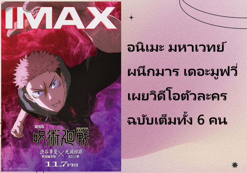 อนิเมะ มหาเวทย์ผนึกมาร เดอะมูฟวี่ อุบัติการณ์ชิบูย่า x จรดลล้างบาง (Jujutsu Kaisen: Execution - Shibuya Incident x The Culling Game) ได้มีการปล่อยคลิปวิดีโอตัวละครฉบับเต็มที่นำเสนอ 6 ตัวละครหลักในภาคนี้ออกมาแล้ว