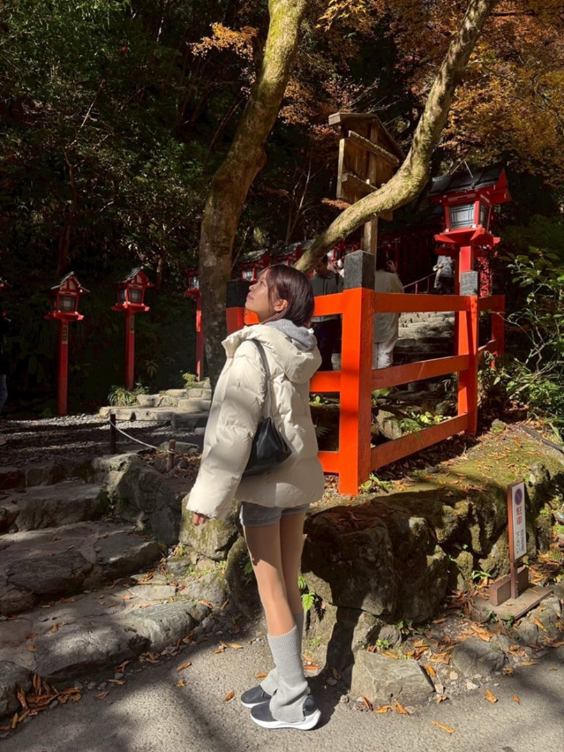 "ไปเที่ยวศาลเจ้าคิฟุเนะที่เกียวโตมาค่ะ"