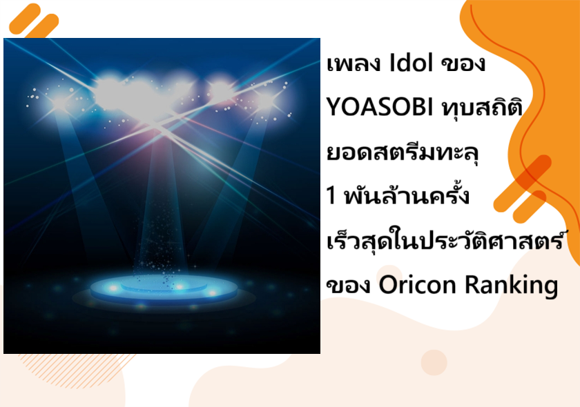 วงดนตรีดูโอ้ชื่อดังจากญี่ปุ่น YOASOBI ยังคงสร้างปรากฏการณ์ความสำเร็จอย่างต่อเนื่อง ล่าสุดเพลงฮิตระดับโลกอย่าง "Idol" ได้สร้างสถิติใหม่บนชาร์ต Oricon ด้วยยอดสตรีมมิงทะลุ 1 พันล้านครั้ง เร็วที่สุดในประวัติศาสตร์