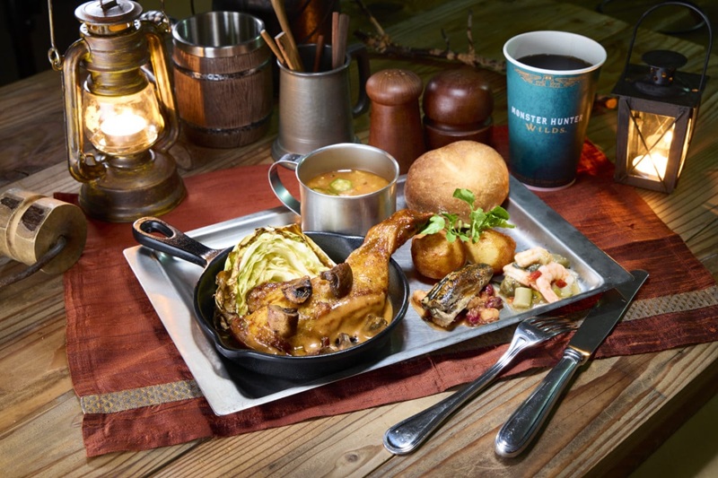 ต้อนรับการมาของเกมภาคใหม่ด้วยร้านอาหารธีมโลกนักล่า "Monster Hunter Wilds ~Moriba's Feast~" ณ Lost World Restaurant (โซน Jurassic Park) ที่จำลองบรรยากาศแคมป์ปิ้งในป่าสีชาด ให้เหล่าฮันเตอร์ได้ลิ้มรสอาหารย่างไฟสไตล์ลูกผู้ชาย พร้อมถ่ายรูปกับคู่หู Felyne และชนเผ่า Moriba
