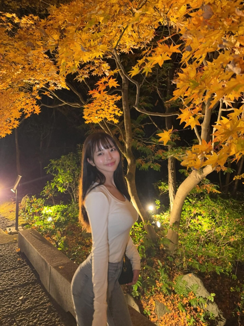 ในโพสต์ 5 คุณฟุคุดะโพสต์ภาพนั่งปิกนิกใต้ต้นแปะก๊วย พร้อมแคปชั่นว่า "ปิกนิกยามค่ำคืนในฤดูใบไม้ร่วง"
