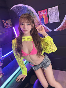 ในโพสต์ 1 คุณโอซากิโพสต์ภาพในลุคสาวแกลสวมบิกินี่ พร้อมแคปชั่นว่า "สาวแกล x สีสะท้อนแสง x นีออน"