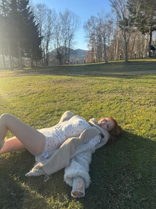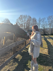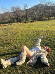 คุณโคโยอิโพสต์ภาพในลุคแฟชั่นฤดูหนาวกลางทุ่งหญ้า พร้อมแคปชั่นว่า "กลมกลืนไปกับธรรมชาติ"
