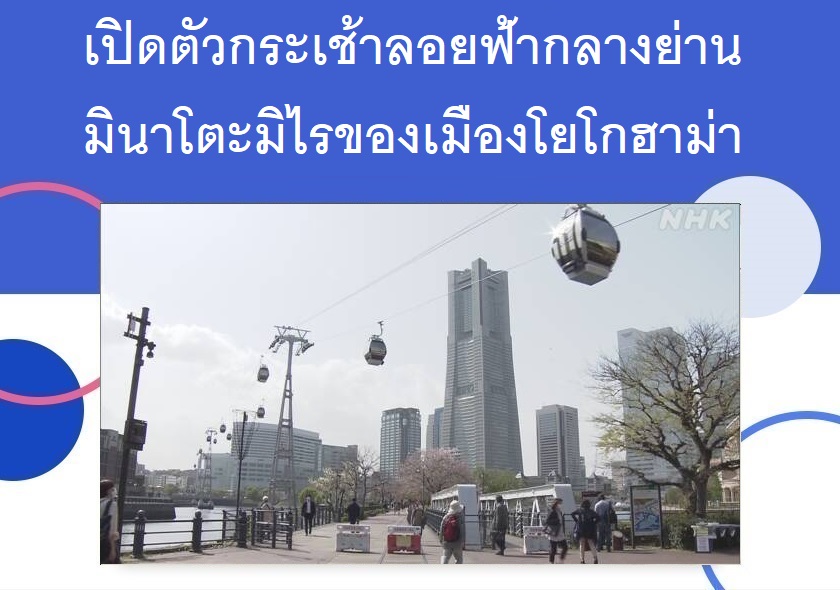 ทางการของเมืองโยโกฮาม่าเตรียมเปิดให้บริการ "YOKOHAMA AIR CABIN" กระเช้าลอยฟ้าชมวิวกลางย่านมินาโตะมิไรของเมืองโยโกฮาม่า ที่ให้บริการระหว่างสถานี Sakuragicho และสถานี Unga Park เป็นระยะทางราว 630 เมตร