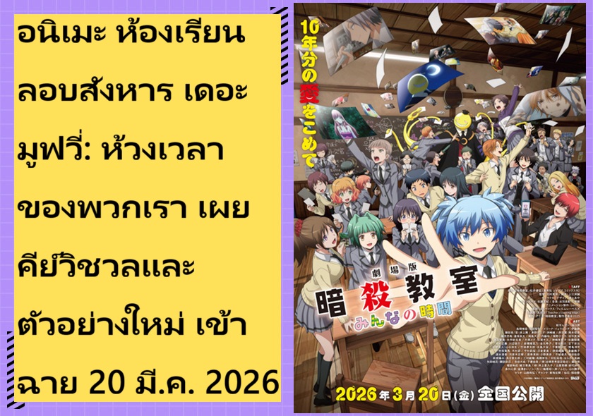 อนิเมะ ห้องเรียนลอบสังหาร เดอะมูฟวี่: ห้วงเวลาของพวกเรา เผยคีย์วิชวลและตัวอย่างใหม่ เข้าฉาย 20 มี.ค. 2026