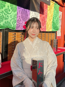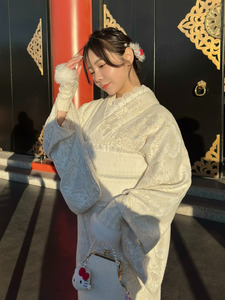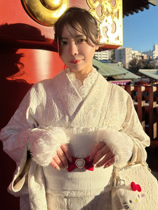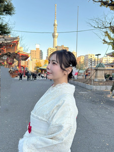 ในโพสต์ 1 คุณโยชิซาวะโพสต์ภาพในชุดกิโมโนสีขาวละมุน พร้อมแคปชั่นดังนี้
