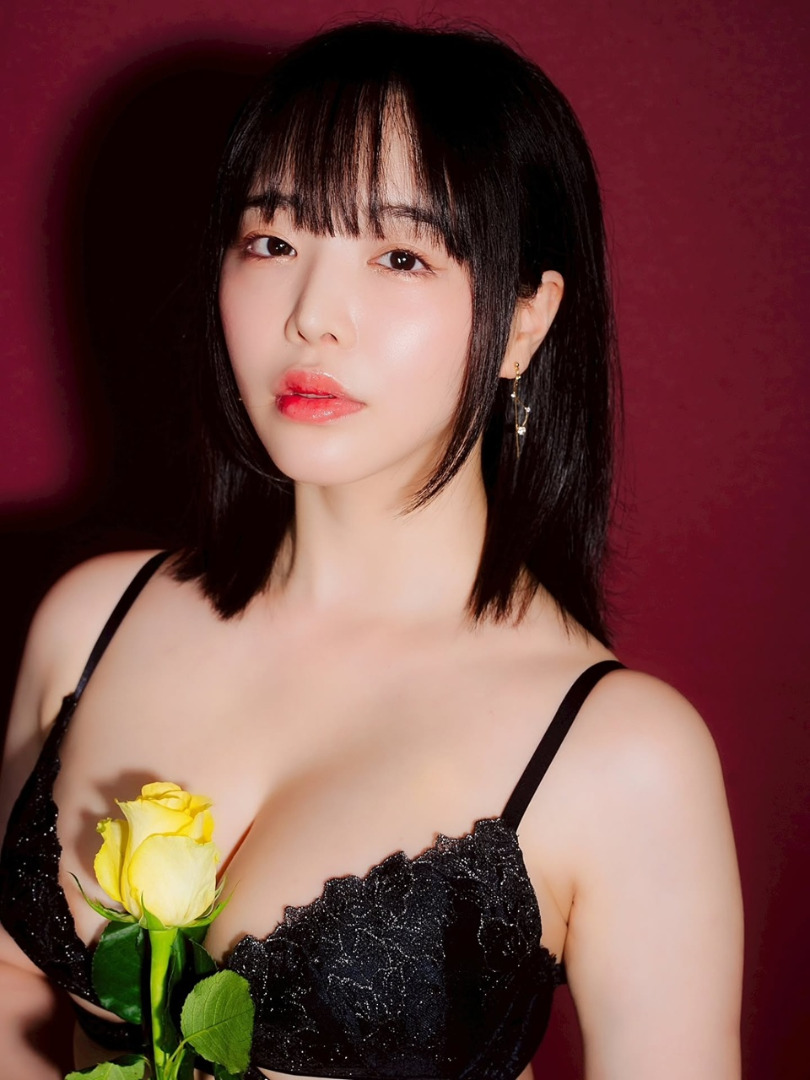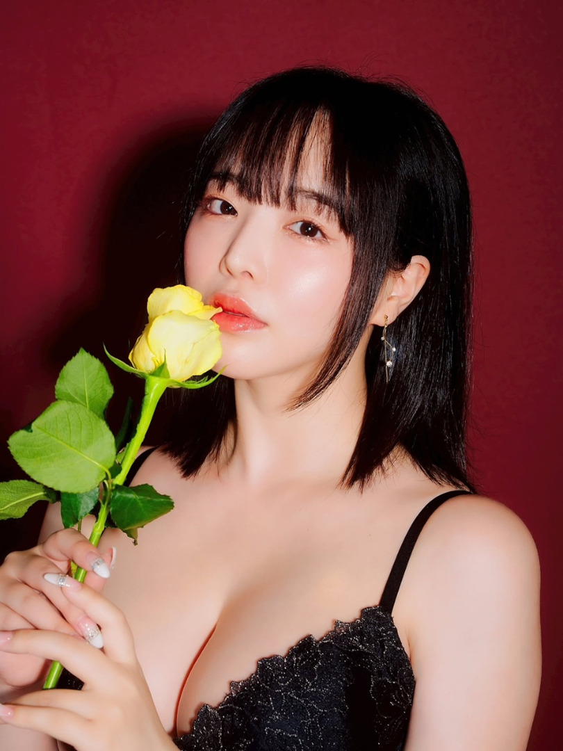 คุณซันโนมิยะโพสต์ภาพนุ่งชุดชั้นในลูกไม้ ถือกุหลาบสีเหลือง พร้อมแคปชั่นว่า "ดอกกุหลาบสีเหลือง"