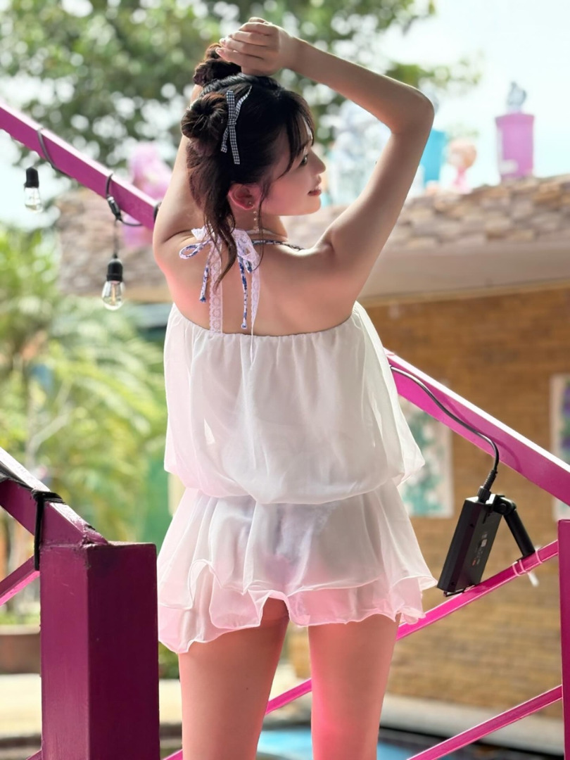ในโพสต์ 3 คุณซากุราโนะโพสต์ภาพหันหลังในชุดสีขาว พร้อมแคปชั่นว่า "ก้นเด้งๆ จ้า"