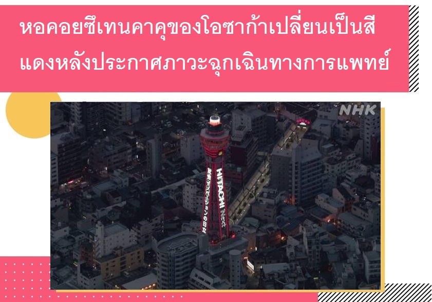 หอคอยซึเทนคาคุของโอซาก้าเปลี่ยนเป็นสีแดงหลังประกาศภาวะฉุกเฉินทางการแพทย์