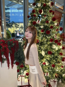 คุณโอซากิโพสต์ภาพในชุดแฟชั่นฤดูหนาวหน้าต้นคริสต์มาส พร้อมแคปชั่นว่า "merryChristmas"