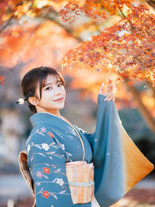 ในโพสต์ 1 คุณคาวาโกเอะโพสต์ภาพในชุดกิโมโนกับใบเมเปิ้ล พร้อมแคปชั่นดังนี้