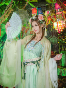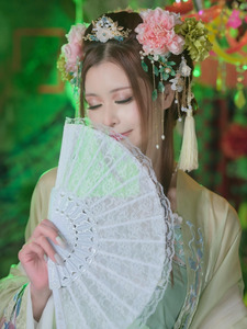 ในโพสต์ 2 คุณอาโออิโพสต์ภาพในชุดกี่เพ้าสีเขียวอ่อน พร้อมแคปชั่นดังนี้