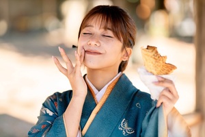 ในโพสต์ 3 คุณคาวาโกเอะโพสต์ภาพในชุดกิโมโนขณะทานขนมหวาน พร้อมแคปชั่นว่า "คนมักจะเข้าใจผิดว่าฉันชอบทานขนมฝรั่ง แต่ความจริงแล้ว.เวลาจะซื้อกินเอง ฉันเป็นสายขนมญี่ปุ่น (วากาชิ) ค่ะ"