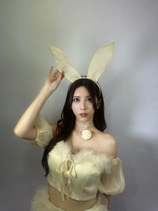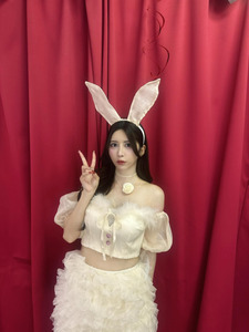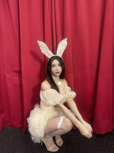 คุณนานัตสึโมริโพสต์ภาพสวมชุดบันนี่เกิร์ลสีขาว พร้อมแคปชั่นเป็นอิโมจิรูปกระต่ายและหัวใจสีขาว