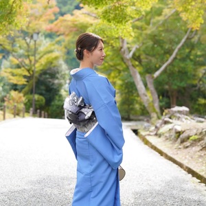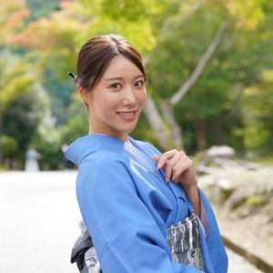 คุณทาเคอุจิโพสต์ภาพในชุดกิโมโนสีฟ้า พร้อมแคปชั่นดังนี้