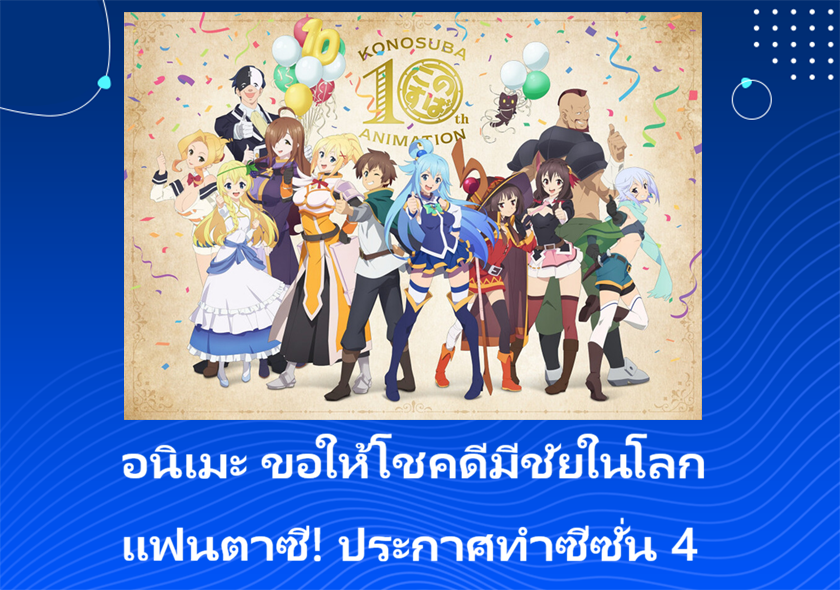 อนิเมะ ขอให้โชคดีมีชัยในโลกแฟนตาซี! (Kono Subarashii Sekai ni Shukufuku wo!) ประกาศไปต่อในซีซั่นที่ 4 อย่างเป็นทางการ พร้อมเผยภาพยืนยันการสร้างออกมาแล้ว