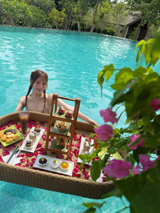 ในโพสต์ 1 คุณชาคุโพสต์ภาพเที่ยวพักผ่อนที่โรงแรมในบาหลี พร้อมแคปชั่นดังนี้