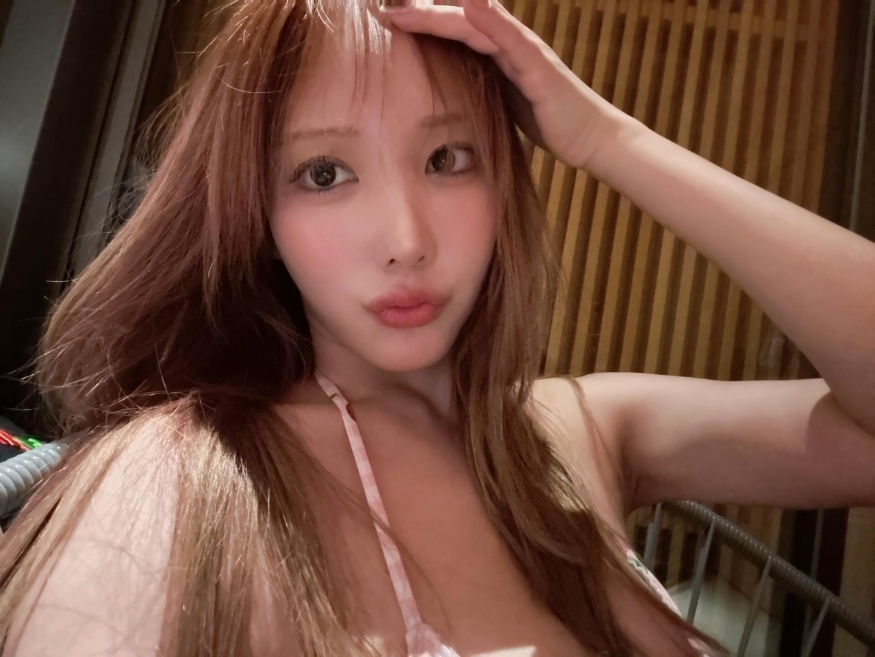 คุณโคโยอิโพสต์ภาพถ่ายชุดว่ายน้ำหน้ากระจกในห้องซาวน่า พร้อมแคปชั่นว่า "พักผ่อนชิลๆ ที่นี่ ไก่ตุ๋นเกาหลีที่เพื่อนทำให้กินอร่อยเว่อร์"