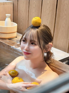 ในโพสต์ 3 คุณโกโจโพสต์ภาพแช่ออนเซ็นกับผลส้ม พร้อมแคปชั่นเป็นอิโมจิรูปผลส้ม
