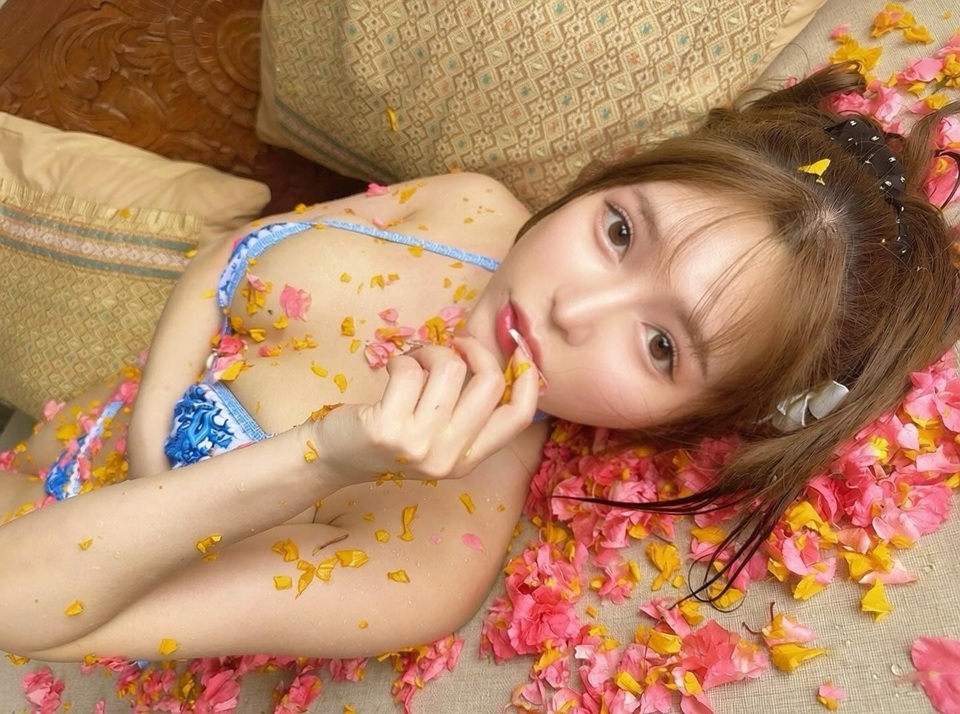 ในโพสต์ 1 คุณโกโจโพสต์ภาพในชุดบิกินี่โรยด้วยกลีบดอกไม้ โดยไม่ได้เขียนแคปชั่น