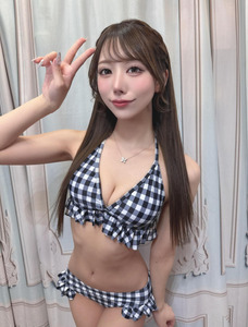 คุณโอซากิโพสต์ภาพในชุดบิกินีลายสกอต พร้อมแคปชั่นว่า "ขอบคุณสำหรับงานอีเวนต์นะ"