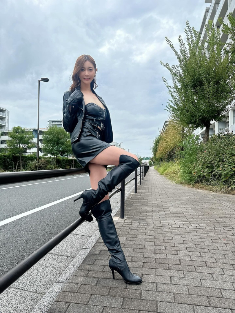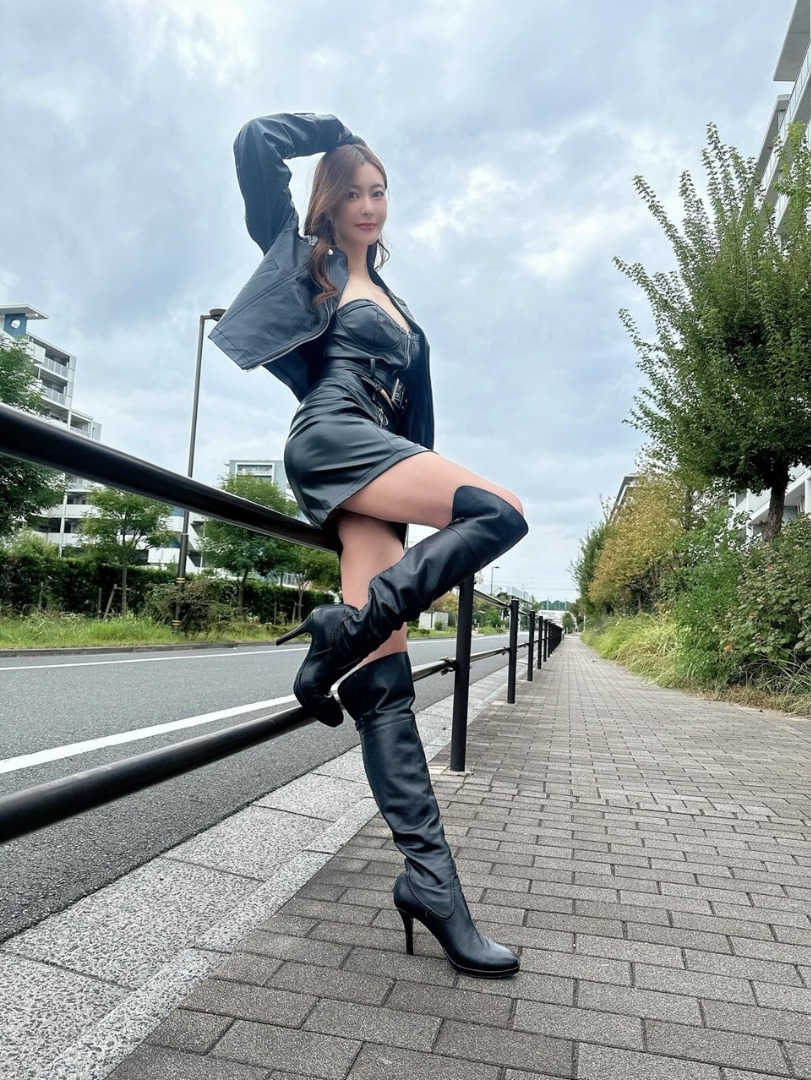 ในโพสต์ 1 คุณอาโออิโพสต์ภาพชุดหนังออลแบล็คสุดเซ็กซี่ พร้อมแคปชั่นว่า "ชุดหนังกับรองเท้าบูท"