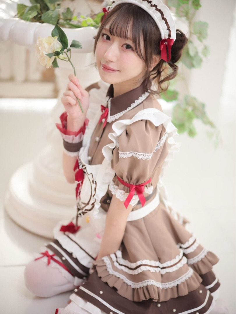 คุณอามากามิโพสต์ภาพลุคเมดสาวสุดคิ้วท์ พร้อมแคปชั่นว่า "Happy Valentine's Day"