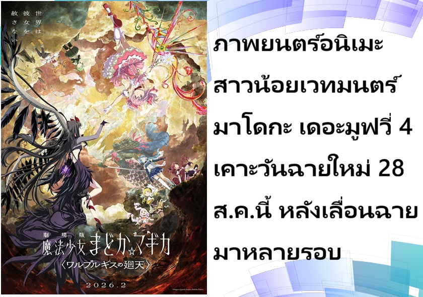 ภาพยนตร์อนิเมะ สาวน้อยเวทมนตร์ มาโดกะ เดอะมูฟวี่ 4 เคาะวันฉายใหม่ 28 ส.ค.นี้ หลังเลื่อนฉายมาหลายรอบ