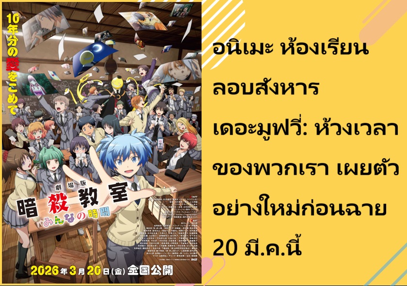 อนิเมะ ห้องเรียนลอบสังหาร เดอะมูฟวี่: ห้วงเวลาของพวกเรา เผยตัวอย่างใหม่ก่อนฉาย 20 มี.ค.นี้