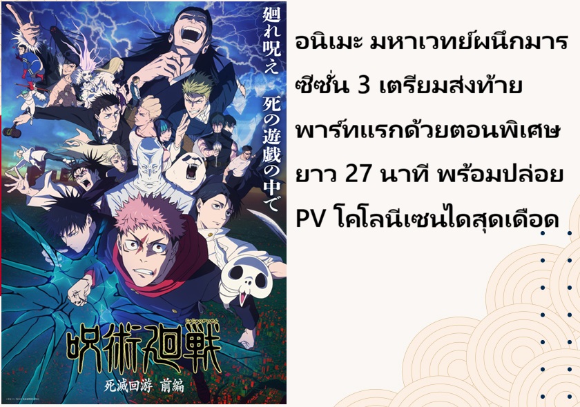 อนิเมะ มหาเวทย์ผนึกมาร ซีซั่น 3 เตรียมส่งท้ายพาร์ทแรกด้วยตอนพิเศษยาว 27 นาที พร้อมปล่อย PV โคโลนีเซนไดสุดเดือด