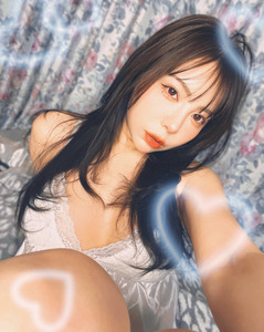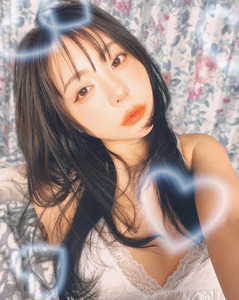 คุณโยชิซาวะโพสต์ภาพช็อตเซลฟี่ในชุดลูกไม้ พร้อมแคปชั่นเป็นอิโมจิรูปหัวใจสีขาวและสีแดง