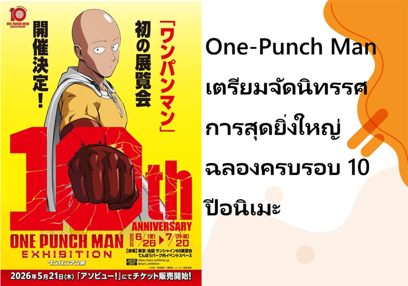 One-Punch Man เตรียมจัดนิทรรศการสุดยิ่งใหญ่ ฉลองครบรอบ 10 ปีอนิเมะ
