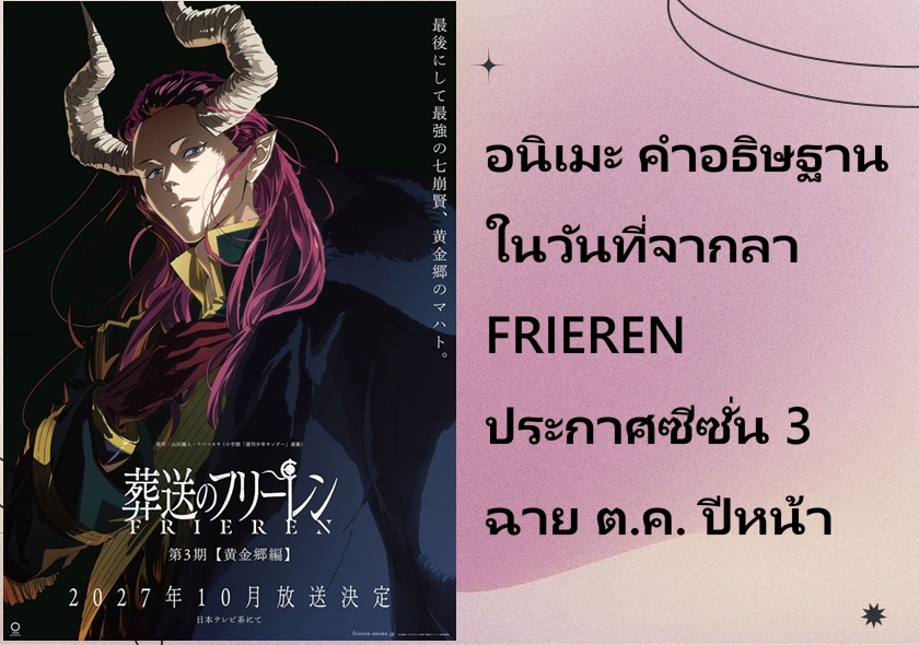 อนิเมะ คำอธิษฐานในวันที่จากลา (Frieren: Beyond Journey's End) ประกาศสร้างซีซั่น 3 อย่างเป็นทางการ โดยมีกำหนดออกอากาศในเดือนตุลาคม ปี 2027 พร้อมเผยภาพทีเซอร์วิชวลแรกออกมาแล้ว